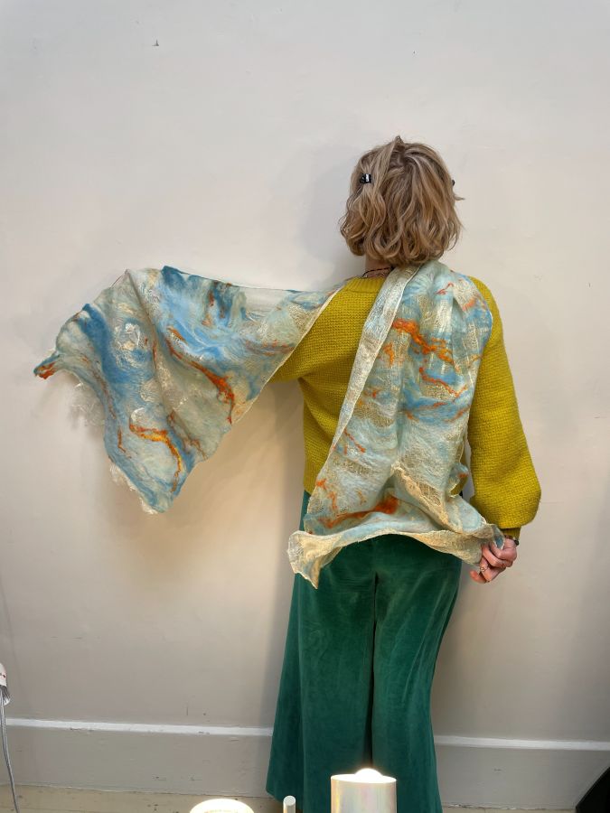 I am not perfect, but I believe in beauty born from imperfection. Felting fits my personality—it is gentle yet strong, patient yet unpredictable. Each piece becomes a quiet conversation between past and present, tradition and personal journey, loss and resilience.