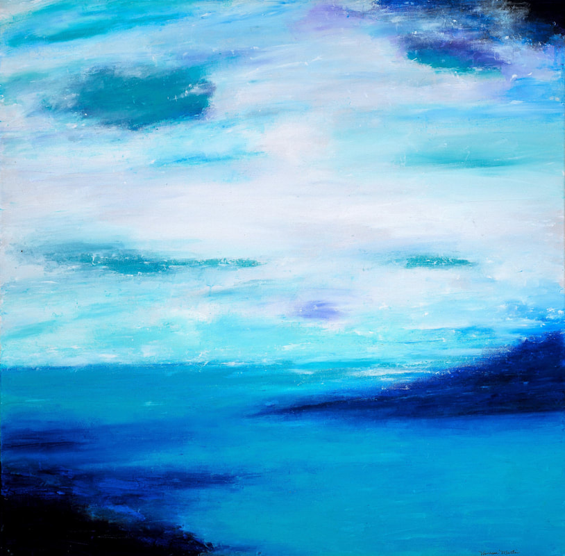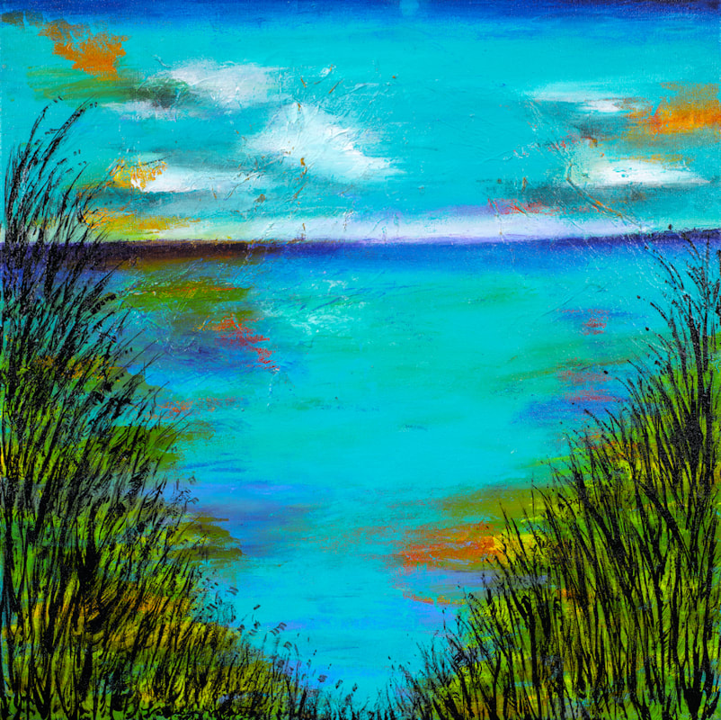 The ocean is always in flux. I watch it as the sun moves across it every day throughout the day. My paintings capture a moment in time that lies within my photographic memory. I know this because I am not looking at the ocean when I am painting all the images which come from what has already been captured within me. My images are about the “meeting of land and sea.”