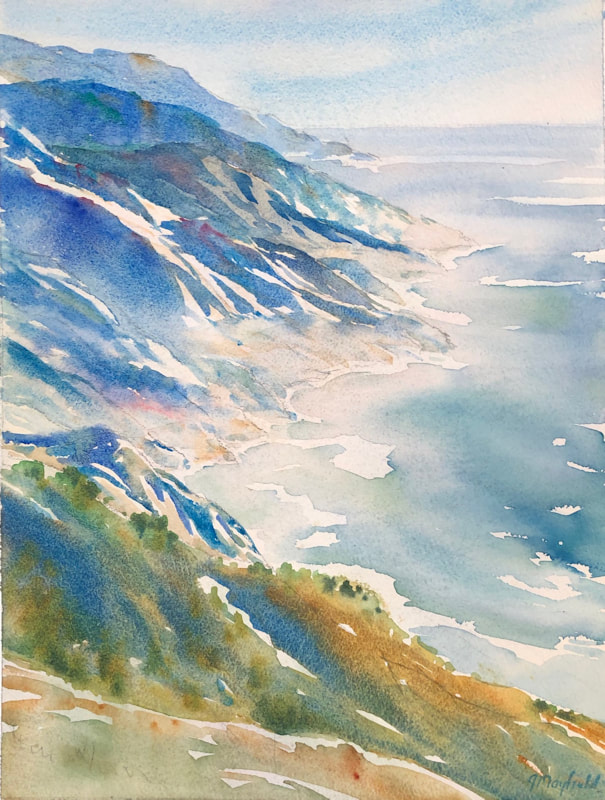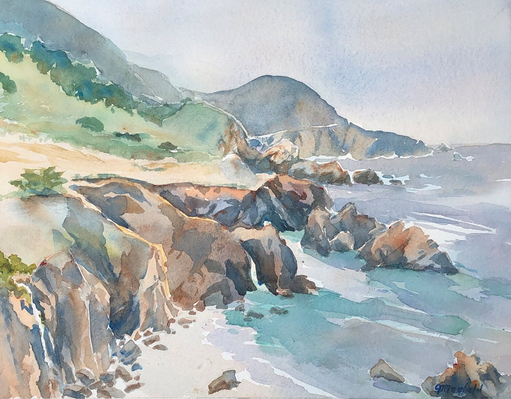 My latest exhibition, (February- April 2020), “Big Sur and the Beyond”, featured watercolors of evocative locations where nature seems to overwhelm all cognition.
